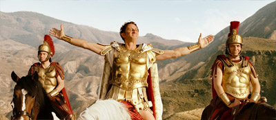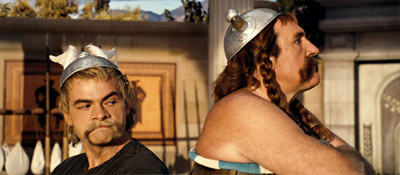 Jenže. U nového Asterixe se spojování s časovými údaji nevyhnete. Jednak proto, že většina scének trvá subjektivně o mnoho déle než by měla, druhak proto, že celý film dohromady trvá o mnoho déle než by měl. Necelé dvě hodiny, které mi nedávno u Sweeneyho Todda uběhly jako lusknutím prstu, provází u Asterixe opětovné sledování časomíry a podivné brumlání ve smyslu „no tak tohle už tu vážně být nemuselo“. A ne, neseděl jsem na novinářské projekci mezi nabubřelými kritiky, kterým není nic dost dobré. Seděl jsem na odpoledním představení plném natěšené omladiny mezi pěti a osmi, u nichž se počáteční nefalšované nadšení (potlesk, napodobování Obelixových pravých háků, vrhání popcornu vstříc plátnu po vzoru řeckých diskařů) plynule přerodilo v kaskádu unuděných výrazů a rozpačitých úšklebků.