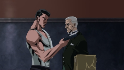 Mnohem zajímavější je animace v další epizodě, hlavně díky tomu, jak se Futoshi Higashide vypořádal s Batmanovým nástupem na scénu. "Crossfire" totiž vypráví o dvojici detektivů, kteří uvíznou uprostřed přestřelky gangů a mafie. Jistě, finální pětiminutové akci předchází zbytečné tlachání o ničem, které ne a ne skončit. Když už postavy řeší, zda je Batman hrdina, nebo kriminálník, mohly by zajít trochu dál. Tady se totiž omezují na "je" - "ne, není", což upadne ve stereotyp asi tři vteřiny po první větě. Akce naštěstí přijde dřív, než stačíte usnout a Higashide se vám za bdělost odvděčí. Podobné entrée by Batmanovi mohli všichni superhrdinové závidět: Co provede Higashide se záchrannou akcí a potřením zločinu, musíte vidět na vlastní oči. Práce s vizuály a atmosférou tu přebíjí jakýkoliv jiný příběh z Rytíře Gothamu. Můžete se spolehnout, že právě z konce Crossfire si odnesete jeden z nejsilnějších zážitků z ulic Gothamu vůbec. Což říkám poté, co mě Nolanův Temný rytíř naprosto odrovnal...