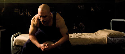 O životopisném dramatu Bronson už filmové tamtamy chvilku mluví a převážně hodně pozitivně. V době, kdy všechny životopisy vypadají prakticky úplně stejně a je úplně jedno, zda se zabývají životy slavných hudebníků, malířů, diktátorů, politiků nebo opravářů zahradních traktorů, měl Bronson nabídnout něco zcela odlišného. A minimálně po audiovizuální stránce se tak stalo. Nicolas Winding Refn je režisér, jenž se nebojí blbnout, umí pracovat s obrazem i s muzikou a v jeho filmu tak poměrně často člověk narazí na scény, které by u životopisně laděné konkurence nenašel, ať by se snažil sebevíc. Barevná škála připomíná videoklipy a jistě ne náhodou se Refn hodně spoléhá i na hudební podkres. Často je to celé sice poměrně samoúčelné, ale funguje to. Na Bronsona se jednoduše kouká dobře, protože prostě nevypadá zdaleka tak nudně jako filmy, jejíchž herečtí představitelé vždycky na jaře dostanou Oscara.