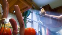 Jídlo v supermarketu doufá, že si ho lidé odnesou domů a s jejich pomocí se dostanou do lepšího světa. Pravda je však úplně jiná a mnohem děsivější, jídlo čeká peklo a jediný, kdo to ví, je párek Frank. Jak však přesvědčit všechny ostatní, že pokud chtějí přežít, musí proti lidem bojovat? Buchty a klobásy je svižný animák, který je neskutečně vtipný a vulgární, ale zároveň stejně tak i chytrý. Skvělá zábava plná drsných fórů, překvapivých point a občas nečekaných ambicí. A rozhodně jeden z nejzajímavějších filmů roku.