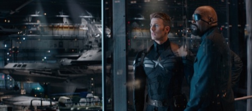 O Nicku Furym (Samuel L. Jackson) toho sice nezjistíte zase tolik. Konečně se ale stane něčím víc, než jen vysvětlovací spojkou v cool kabátu, jejíž tajemství mají tajemství. Ta pravá síla filmu nicméně leží u Kapitána (Chris Evans) a Černé vdovy (Scarlett Johansson), jejichž párování dává daleko větší smysl, než se zprvu zdálo. Film jejich přísně kamarádský vztah vytěžuje s náramnou poctivostí, díky čemuž mezi nimi probíhá mnohem přirozenější vývoj, než kdyby je něco hnalo do postele. Vzájemnou důvěru si přitom budují postupně a navzájem ovlivňují svoje osobnosti, ultimátní správňák a ultimátní lhářka tak na začátku a na konci filmu nejsou úplně stejnými lidmi. Zatímco se on učí jejímu životu v šedém světě, kde trest přichází ještě před zločinem a nepřítele nepoznáte podle jiné uniformy, ona je inspirována k nalezení vlastní identity, kterou nikdy neměla a ni mít nemohla. Jejich dialogy jsou v podstatě stejně zajímavé jako granátový ping pong v ulicích Washingtonu. A ani tím vrstvení Kapitána Ameriky nekončí.