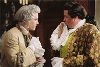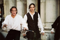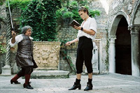 Historický film totiž nemusí být nuda. Fakta mohou ustoupit pořádné dobrodružné jízdě, herci mohou přehrávat o sto šest a trousit řízné hlášky, jak je libo. Ve scénáři dvojice Jeffrey Hatcher - Kimberly Simi se na to přímo pečlivě dbá – a naprosto nejméně jde o to, jestli je to vůbec možné, či zda je to, nedej bože, pravda. Všichni se tu dobře baví; Pod rouškou vyfintěné divadelní hry s životopisným podtextem probíhá rozjuchaný cirkus plný současných popkulturních odkazů, fikaných záměn a hlášek naprosto výrazně za hranici seriózního filmu. Zpočátku se vám sice bude zdát, že ony humorné vložky jsou jen osamělými výkřiky do tmy. To má však Hallström ještě zataženou ruční brzdu. Ono není divu – nemůžete vpustit bezejmenné charaktery s nejasnými osudy do zběsilého víru událostí a čekat, že to diváka bude bavit. Alespoň zběžná psychologická průprava je proto na místě, i když ve světle ostatního dění působí lehce unyle. Pak se ale režisér nevídaně odpoutá od jakýchkoliv vyšších cílů a začne prostě prodávat popcorn. Dělá si srandu z paruk, motá do děje digitální triky (Celkem šílené, mimochodem. Ale z celkového konceptu nijak výrazně nevybočují) a vystřihne si efektní šermovačku ve velkém stylu.