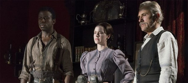 Jakmile si člověk zvykne na to, že tenhle malý western vypadá hůř jak průměrný seriál, začnou se objevovat důvody, proč na něj koukat. Herecky jde vyloženě o lahůdku. Waltzův lovec lidí se brzy začne projevovat ne jako profesionální drsňák, ale jako správný chlap, jemuž to navíc pálí víc, než by jeho okolí čekalo. Willem Dafoe si svého zloducha, který je zlý hlavně proto, že se to od něj tak nějak čeká, evidentně užívá a Rachel Brosnahan zvládá být silnou ženou ve světě mužů naprosto přesvědčivě. Potěší i Benjamin Bratt, jehož jsem měl vždycky tak trochu za kašpara, ovšem s přibývajícími roky jakoby v něm narůstalo i charisma. A čekání na to, až si všichni rozdělí, kdo si to s kým ve finále rozdá, je tak díky výkonům všech zúčastněných, zajímavým charakterům jejich hrdinů i fajn dialogům docela zábavné. A pak se začne střílet.