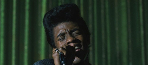 Režisér Tate Taylor, jenž má na kontě i naivní ale pohodový Černobílý svět, se totiž u klasicky pojatých filmů o životech velkých umělců taky nejspíš nudí a v případě příběhu kmotra soulu dělal evidentně všechno pro to, aby neskončil s nálepkou uchcaného konzervativního dramatu vyprávějícího o jedné velké osobnosti. Taylor se snažil natočit svižnou podívanou a většinu času se mu to daří. Nechává svého hrdinu mluvit přímo k divákům, což je celkem osvěžující, střídá několik časových rovin, takže chvilku koukáte na kruté dětství budoucího muzikanta a o půl minuty později sledujete, jak vyprodá Apollo a natočí legendární živák, a o chvilku později o zakládá svou první kapelu. Jednoduché? Určitě, ale celkem to funguje a navíc je většinu času na plátně Chadwick Boseman, jenž odvádí fantastický výkon, ať už herecky, tak i jako zpěvák.
