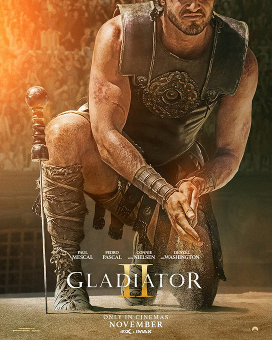 hrají: Paul Mescal, Denzel Washington, Joseph Quinn, Connie Nielsen, Pedro Pascal