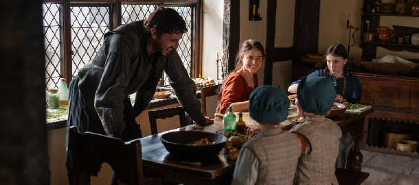 Osobně jsem na projekci Hamneta šel bez jakýchkoli informací, v čem přesně má tahle shakespearovská aktualizace spočívat. Díky této optice je více než polovina filmu skutečně zajímavá a podnětná, jelikož z vyprávění není zřejmé, kudy se budou cesty protagonistů ubírat. Scénář, který Zhao napsala společně s autorkou knižní předlohy Maggie O'Farrell, sleduje divoženku Agnes a její rozvíjející se vztah s bouřlivákem Willem. Zatímco on se protlouká coby domácí učitel a sžírají ho nenaplněné umělecké ambice, ona navzdory odsudku maloměšťáků zůstává věrná myšlenkám své matky, údajné lesní čarodějnice, a většinu času tráví obklopena zvířaty a přírodou.
