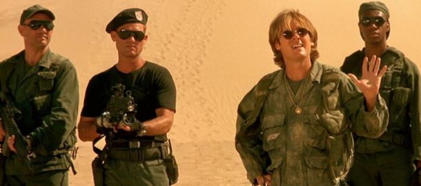 Emmerich se přitom moc nezabýval rozjímáním nad filozofickým nebo historickým rozměrem tohohle nápadu. Nejdůležitější pro něj byla cool akce, jíž obložil dobrými postavami, atraktivním prostředím a stylově vypadajícími padouchy s unikátními zbraněmi. Nová sci-fi, která místo rodinných dramat a létání po vesmíru nabídla špinavou řežbu (vlastně trochu ve stylu Vetřelců nebo Predátora), byla na světě – a rychle si našla armádu věrných fanoušků. Ti o tři roky později naskočili do milovaného seriálu a… zbytek je historie, která se snad brzy dočká své další kapitoly.