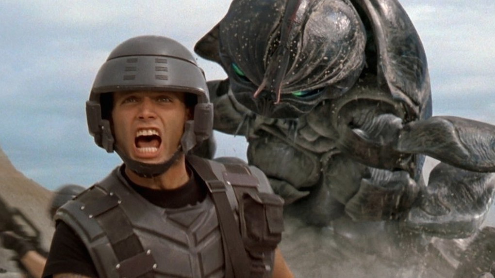 Hvězdná pěchota v sobě pěstuje dostatečně adrenalinový válečný nátěr, kdy se divákovi, který nikdy nestál na hradbách a nekropil pod sebou statisíce parchantů, vyplavuje přesně tolik testosteronu, kolik si příroda žádá. Triková úroveň veškerého broukobití je na svou dobu excelentní. Manévry kosmických plavidel na oběžných drahách zrežíroval Verhoeven velkolepě, akce v terénu zas jednoduše baví, což se dá s jemně cynickým úsměvem prohlásit i o okamžicích, kdy jsou uniformovaní nebožáci půleni, propichováni, zašlapováni i zbavováni svých mozků. Na „Beverly Hills style“ se ale nabaluje hlavně sarkasmus, který fašistickou předlohu převádí v neméně fašistický náborový leták.