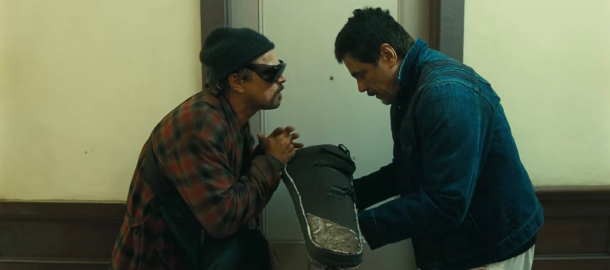 Právě během jednoho zásahu v detenčním centru si Perfidia vyšlápne na plukovníka Lockjawa, kterého Sean Penn (možná v životní roli jistě si mašírující pro ceny) hraje s čelistí urputně semknutou a s kouty povadlými podobně, jako je jeho morálka. Právě plukovník se stane ústředním antagonistou pro Pata a jeho dceru Willu v podání Chase Infiniti (PTA dává po Aleně Haim z Lékořicové pizzy, která se mihne i zde, příležitost debutovat dalšímu přirozenému hereckému talentu). Tradičně uhrane i Benicio Del Toro jako učitel karate Sensei, vybízející ke klidu heslem „oceánské vlny“, zatímco sám dělá spíš vlny revoluční.