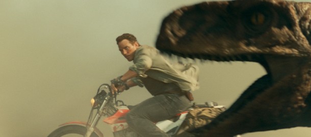 Bodem obhajoby číslo jedna budiž fakt, že dinosauři byli, jsou a nejspíš už vždycky budou na velkém plátně prostě cool. Jedna z nejkrásnějších scén nejen tohoto filmu, ale dost možná i celé série, se pak odehraje už v prvních minutách a zahrnuje brontosaura překážejícího na cestě dělníkům. Na první pohled obyčejný záběr na majestátného tvora se po zapojení ikonické hudby Johna Williamse (aktualizované o noty Michaela Giacchina) a šikovné scénáristické berličky rázem pozvedne v něco víc, najednou si uvědomíte, o jak nádherná, inteligentní a citlivá stvoření tady jde, takže vám je celý film a jeho svět hned mnohem bližší. Je to taky potvrzení, že režírující Colin Trevorrow netočí jen účelově, ale vkládá do filmu hodnoty, které lze aplikovat i do skutečného světa. Považujme to za bod číslo dvě. Hudbu, která je konstantně po celou novou trilogii výborná, rovnou označím za trojku a jdeme dál.