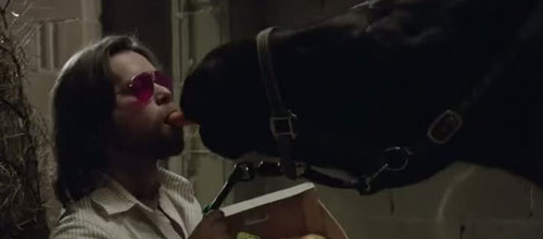 Krajčo ovšem idiocii celého snímku dokonale kraluje, protože Babinská se ani nenamáhá s jeho postavou něco dělat. Nadán andělskou schopností je pořád za stejného idiota - souloží s naivními ženami, rozvrací rodiny i pracovní pozice, nadává tátovi, který by ho rád vzal zpátky k rodinnému krbu, a snaží se být pořád hrozně moc free, i když se každý večer jen vrací k flašce do opuštěného karavanu, který mu spolu s koněm poprávu zabaví. Zajímavých antihrdinů jsme měli ve světové kinematografii desítky a ke každému z nich vede nějaká cestička. Babinská je ale v případě Krajča všechny pálí, jako by se snažila stvořit prototyp dokonalého pablba, kterého byste nejradši namleli do žrádla pro psy.