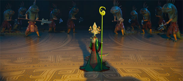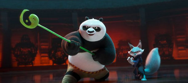 No a tím končíme. Pokud Kung Fu Panda v něčem nepřekvapí, tak je to příběh. Jenže v tomhle případě se možná víc hodí napsat, že co se příběhu týče, tak zklame víc, než byste čekali. Jistě, vše tu probíhá podle mustru. Po se musí popasovat nejen s hromadou protivníků, ale i s nějakým tím vnitřním váháním, zlodějka Zhen bojuje s morálním dilematem a tím, na čí stranu se přidat, a bitky se tu střídají s více či méně povedenými legráckami. Potíž je, že to celé působí o dost vyčpěleji než předchozí díly. Za to může samozřejmě i fakt, že ostatní hrdinové z předchozích dílů vyrazili na své vlastní mise a objeví se až na úplném konci a všechno musí dopředu táhnout Po. Což je sympaťák, bohužel ta dynamika dialogů s ostatními zvířecími mistry bojových umění tu chybí, stejně tak i nějaké nápaditější bitky.