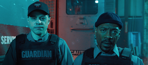 Jenže jde samozřejmě o naprosto rutinní výplň pro streamovací platformy, která vychází z laciného scénáře, odpudivě neoriginálního nápadu a potřeby mít obsah. Eddie Murphy je sice skvělý komik a jeho vrcholná díla si pustím vždy rád, protože jde o personu, která má výjimečný cit pro komediální timing a projevuje skvělé exhibiční herectví. Zde mu však byla přiřknuta podivně vážná role, neboť jeho postava nesrší humorem, namísto toho je odměřená, apatická a neustále nasraná. Pete Davidson je oproti tomu rozverný, ukecaný, neskutečně otravný a stává se tak bílým Kevinem Hartem, jen je o něco vykulenější. Nemám nejmenší ponětí, proč se zrovna tato persona objevuje ve filmech, protože jeho chemie s Eddiem Murphym je naprosto nulová.