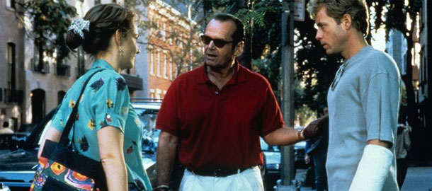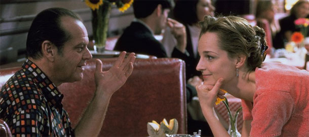 Asi budu za heretika a nic proti Nicholsonovi (tenhle pán prostě neumí zahrát nepřesvědčivě nebo rovnou blbě, ať už má ve filmu jakoukoliv roli - rozsahem i charakterem), ale v té době jsem to (opakovaně) sledoval hlavně kvůli Hunt, která mi v Twisteru padla do oka a tohle netradiční romantické dostaveníčko mi shodou okolností přišlo do cesty zhruba ve stejné době, kdy se v bedně začalo vysílat Mad About You, ve kterém už to přerostlo v regulérní love interest