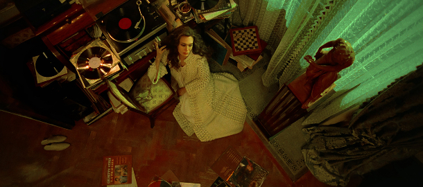 Dost možná nejlepší kompozicí filmu je Maria sedící na koberci je snímaná z nadhledu, těžké závěsy v barvě zelené jako z Vertiga ji oddělují od zbytku světa, zatímco se ponořuje do poslechu svých starých nahrávek, pomalu se smiřující s tím, že její hlas už nikdy nezazní se stejnou silou jako dřív.