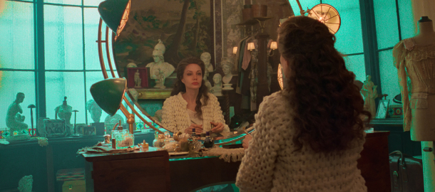 Angelina Jolie v jistém smyslu ztvárňuje ideál operní hvězdy lépe než pěvecká legenda Maria Callas sama. Jolie je ještě krásnější, ve snímku sebevědomější, sošná, elegantní, je v mnohém nepřístupná – její tvář je jako opera sama (nebo alespoň opera v obecném povědomí). Její profil, zejména v černobílých pasážích, je profil klasické, chladné spanilosti. Zatímco Callas se zdála více žertovná a hravá, Angelina je velmi dominantní a na obdivu si zakládající. Svůj byt i kavárnu ovládá jistými pohyby, jako by se pohybovala po prknech jeviště. A svému sluhovi dává instrukce typu „zamluv mi stůl v kavárně, kde mě číšníci znají. Mám náladu být adorovaná.“