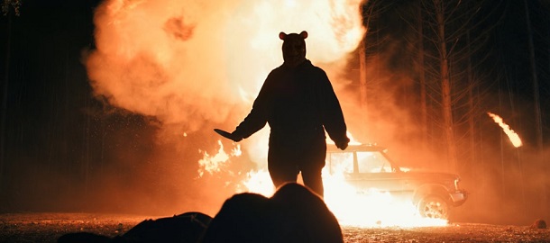 Když totiž řeknu, že Krev a med vypadá jako amatérský kousek bandy filmových fanoušků, jenž byl natočen za pár šupů v lese za jejich barákem, vlastně bych film ještě chválil. Medvídek Pú je ukázkou totálního neumětelství a neschopnosti natočit zajímavě alespoň jedinou scénu. Umím si představit, že s troškou nadhledu a láskou k pohádkové předloze by mohla z výsledku vylézt fajnová blbina, Rhys Waterfield to ovšem celé pojal jako vážně myšlený, brutální a nekompromisní slasher, v němž není pro vtipnou hlášku či práci s Milneho knižní klasikou místo. Ještě aby jo, když scénář se evidentně vešel jen na jednu normostranu.