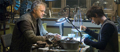 Problém je však v tom, že nadšení z ní nebudou ani ti starší diváci. Příběh dívky Liny a jejího kamaráda Doona, kteří se společně rozhodli město opustit a vypátrat, co leží za zdánlivě nekonečnou temnotou, je totiž bohužel až příliš jednoduchý. Od začátku se tváří jako sympatická dětská detektivka, v níž hrdinové musí shromáždit několik indicií, jež je povedou po správné cestě pryč z města. Bohužel režisér Gil Keanan, jenž si hraný film vyzkoušel vůbec poprvé v kariéře (před tím natočil velmi zábavný animák V tom domě straš), neumí příliš vyprávět. Žádnému z obyvatel města se nikdy nedostane pod kůži a je dost těžké začít oběma hrdinům držet palce. Pod Keananovým vedením jsou lidé z Emberu jen panáci, u nichž si nebudete pamatovat jména. Natož aby vás zajímal jejich osud. Fakt, že Město Ember nedokáže diváka pořádně chytit a strhnout, je sice v podstatě jediná výraznější chyba, ale za to hodně zásadní. Ačkoliv v dalších odstavcích budu už převážně jen chválit, nic to nemění na tom, že film je v podstatě docela nuda.