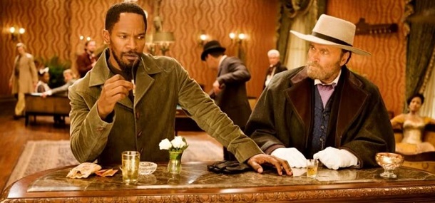 Nespoutaný Django nabízí velkou, archetypální pistolnickou story o chlapíkovi, co zvládl to zlo pořádně vojebat. Tarantinovo kombinování vysokého s nízkým a popkulturní remixování je tu naprostým požitkem, zvlášť když perfektně slouží příběhu. Jak v emancipaci černošského drsňáka – ty chvíle, kdy jako princátko v modro-bílém outfitu dráždí všechny jižanské mocipány, jsou neodolatelné –, tak i při jeho přestřeleném etnickém zrcadlení v padoušství oslizlého Samuela L. Jacksona.