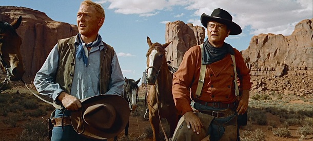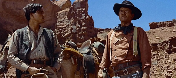 Tomu bylo v roce 1956 skoro padesát a nejlepší léta v sedle měl už za sebou, byť v něm tvrdošíjně setrval téměř až do své smrti v roce 1979. Pokud jste s ním viděli některý z jeho nesčetných filmů o kovbojích, kavaleristech a indiánech, potom o něm víte všechno. Jeho role si totiž byly navzájem velice podobné, jak vyžadovala filmová doktrína studiového systému a představovaly typického Waynea jako muže na správném místě, který ví, co je dobro a zlo. Jeho chování sice může být přísné, asketické a strohé, ale vždy věrné těm správným americkým hodnotám tehdejší doby. Tomuto předobrazu amerického filmového hrdiny se ovšem několik rolí velmi zásadně vymyká. A jak správně tušíte, role Ethana Edwardse ve Stopařích (The Searchers) je jednou z nich. A nebál bych se rovnou napsat tou nejzásadnější.
