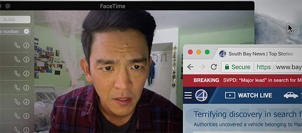 Dovedu si představit, že kdyby Pátrání byl „normální“ film, asi bych si ho docela užil. Tvůrci tu mají k dispozici zajímavé postavy, umí šponovat napětí, přijít ve správnou chvíli s tím správným zvratem a jako klasická detektivka by to tedy fungovat mělo. Pátrání však tou klasickou detektivkou zůstává jen v příběhové rovině, v té režijní jde úplně jinudy. Celý je totiž nasnímaný skrze telefony a počítače, se kterými hlavní hrdina pracuje. Mnohdy tak vidíme, co zrovna vyhledává, že se hrabe ve starých fotkách uložených na harddisku, ale díky kameře zapnuté při skypování je tu i dostatek prostoru pro to, aby mohl normálně hrát.