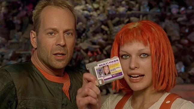 Psal se rok 1997 a Luc Besson byl zrovna na vrcholu svých režijních schopností. Než se definitivně přestěhoval do továrny na rychlokvašené zmetky (imf mě nebude mít rád, já vím ;), stačil vysmahnout nebývale barevnou a zábavnou vizi budoucnosti, která postrádala téměř všechny sci-fi symptomy oné doby – hlavně byla vtipná a romantická a lidé v ní řešili skoro stejné problémy jako dnes. Ostatně i její hlavní hrdina Korben Dallas (Bruce Willis) není tvrďák se světelným mečem, ale obyčejný taxikář na pokraji existenciální krize. Jednoho krásného dne mu střechou do auta propadne záhadná slečna s vnadami a obličejem Milly Jovovich a červenými vlasy jako z katalogu. Jmenuje se Leelou a utíká před policí. Korbenův fádní život od té chvíle nebývale ožívá – nejen, že je mu divoká dívka více než sympatická a má potřebu se o ni starat, ale postupem času se z něj stává nedobrovolný hrdina v otázce přežití Země. To je totiž tak: Každých pět tisíc let hrozí naší modré planetce zničení. Dnes je právě ten den, kdy se koloběh opakuje a existuje samozřejmě jen jediný způsob, jak tajemné zlo na dalších pět tisíc let zastavit. Spočívá v současném spojení čtyř základních přírodních elementů, reprezentovaných malými kameny, a elementu pátého reprezentovaného… Leelou. Kromě morálního dilematu, zda si vybrat záchranu Země či ženu svých snů, musí se Korben vypořádat ještě se zlým záporákem Zorgem (Gary Oldman), občas umlčet praštěného moderátora Rubyho Rhoda a postřílet pár podivuhodně vyhlížejících cápků, co si to rozhodně zaslouží. Jeď, Korbene!