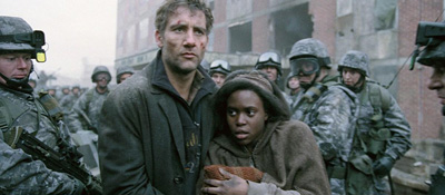 Chválit bychom mohli na deseti dalších stranách, takže bych chtěl trochu poposkočit a vrhnout se na existenciální otázku. Proč Cuarón netočí něco opravdu, ale opravdu velkého. To že Danny Boyle ze Sunshine odpochodoval ke zjevně oscarovému Milionáři z chatrče (uff), má svoji logiku. Cuarón se ale v posledních dvou letech přehrabuje nabídkami a nic z toho. Přitom přesně po vzoru Del Tora světu předvedl (=dokázal, že třetí Potter nebyla náhoda), že umí svůj tým krotit jako málokdo jiný. Audiovizuální mazec za pár desítek milionů dolarů si i v trikových sekvencích drží konzistenci, kterou by mohly hollywoodské trháky jen tiše závidět. Neustálý tah na branku je navíc v závěru podpořen šestiminutovou docu-jízdou, ve které kamera líže podlahu a statečně se s Clivem vydává do míst, kde ještě žádná pětatřicítka nebyla. Se steadicamem nebo bez něj, tahle scéna díky dokonalé synchronizaci "všeho kolem" (výbuchy, tanky, miliony komparsistů) zaslouží metál sama o sobě! Potomky ale při vší vůli na prvočinitele nerozložíte. Skvělá kamera, skvělý střih, skvělý zvuk, skvělé kulisy. Ano, to všechno je pravda, ale stejně jako působí beton mezi cihlami, tady jednotlivé složky drží pohromadě neviditelná síla. I po pátém zhlédnutí to vypadá, že by utahala klidně pět buldozerů.
