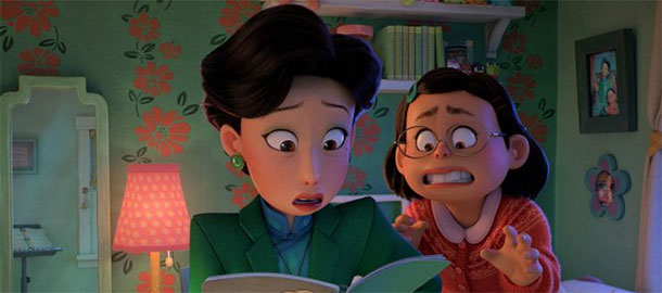Proměna, kterou natočila celovečerně debutující Domee Shi, autorka povedeného kraťasu Bao, do toho hned na začátku pořádně šlápne. Přinejmenším úvod, kdy se Mei divákům představuje, si co do svého tempa, akčnosti a kadence střihu nezadá třeba s akčními scénami z Incredibles. Rychle se to ale celé uklidní a ukáže se, že Shi točí hodně komorní a očividně i dost osobní příběh. A taky lehce průhledný, což by mohlo pro někoho být problém. V základu jde o příběh holky, co se mění v obří pandu, ovšem Pixar by se s něčím takovým nespokojil, a tak je celkem snadné vidět za vším tím pandím dováděním a blbnutím pubertální rebélii, touhu odstřihnout se od tradic a přísné maminky, ale zároveň i snahu najít s ní společnou řeč, protože obě hrdinky se mají rády.