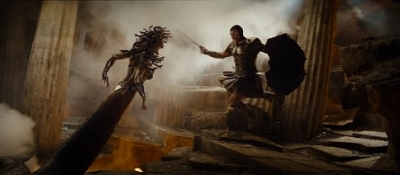 Většiny z nás se ale týká "jen" 2D edice. Krom několika kameramanských excesů (postprodukční doostřování slepých záběrů nikdy nevypadá dobře) se může pochlubit docela slušným obrazem, který se sice současné špičce nevyrovná (ani Neuvěřitelnému Hulkovi, který na Blu vypadá famózně), ale to není žádná ostuda. Na obrazu je občas znatelné DNR, díky kterému je zrno minimální a po kterém některé detaily tváří vypadají jak exponáty z muzea voskových figurín (hlavně ve scénách na Olympu). Kresba ve stínech je super, černá jakbysmet, barvy jsou velice solidní a vynikají hlavně v pestřejších prostředích - vždyť je tu spousta krásně zachycených scenérií a vymazlených vizuálů, které v HDčku vypadají strašně pěkně (třeba les, ve kterém Perseus dostane meč). Tomuhle Blučku nechybí ostrost ani tridimenzionalita, jen drobnokresba mohla být o něco lepší. Zato zvuk už o moc lepší být nemůže, podobně nařachaná zvuková stopa se jen tak neslyší. Hlavně kombinace efektů a energické hudby parádně šimrají membránu subwooferu. Skvělá stopa.