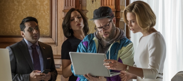 Někomu samozřejmě nebude po chuti Rogen. Nemluvím o hereckém výkonu, protože Seth si to odvodí velmi profesionálně, ale o samotné postavě. Tady totiž produkční dvojka Goldberg/Rogen nikam neroste. Rogen je sice pracant a v úvodní scéně udělá cokoliv, aby získal reportáž (navíc zjišťujeme, že je dost možná superhrdina, jelikož pokorně snáší pády, při nichž by si kdokoliv zlomil vaz), ale taky je to hulič a bohém, tak jak jsme ho znali z prvních rolí. Při první, maximálně druhé možné příležitosti vybalí na aspirující prezidentku kapsy plné drog a rozhodne se jí rozšířit obzory pomocí halucinogenů. Také jeho neochota přizpůsobit se dresscodu je spíš úsměvná než vtipná.