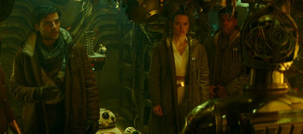 Postavy logicky nemají jak dýchat a tentokrát je vlastně úplně od věci hodnotit herecké výkony, protože Rey a Kylo uhýbají jednomu deus ex machina za druhým, zatímco vedlejší postavy zůstávají vedlejšími a dokonce se musí dělit o prostor před kamerou s těmi, které zdánlivě už dávno opustily herní pole. Je to dílem frustrující a dílem matoucí - pro diváka i herce, ALE…