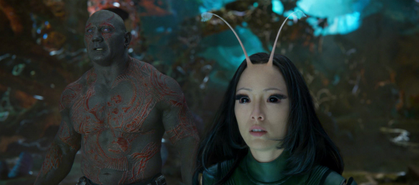 Gunn má obrovský vizuální cit a především jeho zásluhou to celé drží pohromadě. V některých scénách se mu ten potřebný nový komiksový vizuál daří budovat (zmíněný úvod nebo řádění Yonduova šípu v útrobách vesmírné lodi), jindy to ale vyloženě skřípe (v podstatě kompletní finále). Otázka je, co s tím, protože do podobné pasti dřív nebo později spadnou i Avengers, až bude tucet nebo víc hrdinů stát proti Thanosovi. Vlastně se dá říct, že už jsme si to vyzkoušeli proti Ultronovi, kdy vzduchem skutečně zas a znovu lítal digibordel. Je to velký krok stranou od prvních Strážců a důkaz, že méně je někdy více. Jenže v marvelovkách nemůžete ustrnout, každý další nepřítel a každá další hrozba musejí být větší. Strážci to ve svých PĚTI potitulkových scénách dokazují, když naznačí příchod Adama. Modří už vědí a tuší, že Ego byl jen zahřívacím kolem. Teprve souboj s touhle kosmickou entitou přinese jatka galaktických rozměrů.