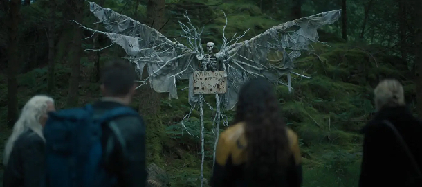 Podobnost Ishaniných Strážců s tvorbou jejího otce zkrátka není vůbec náhodná. Může za to jeho producentský dohled? Možná. Ale pravděpodobnější je, že si Ishana vybrala téma pro ni blízké, ať už za to může vliv jejího otce nebo pouhá shoda okolností. A nebyla to vůbec špatná volba. Knižní předloha si hraje s motivy irského folkloru, a to je vždycky vděčné téma, z něhož se dá vytěžit solidní atmosféra hustá tak, že by se dala krájet. Tady Ishana ukazuje, jak dobře má nastudované principy postupného budování napětí a letmého poodhalování tajemství ukrývajícího se jak v lese samotném, tak v hlavní hrdince. Náznaky, že s Minou není všechno v pořádku, se totiž rychle snoubí s houstnoucí tmou ve starém lese, kam dívku zavede osud a pochybná navigace. Díky tomu fungují Strážci v prvním dějství prakticky bezchybně a vzbuzují očekávání, co bude dál. Skvělou práci tady odvádí hudba Abela Korzeniowskiho, polského skladatele podepsaného např. pod Sestrou (2018) nebo Hrou špionů (2020).