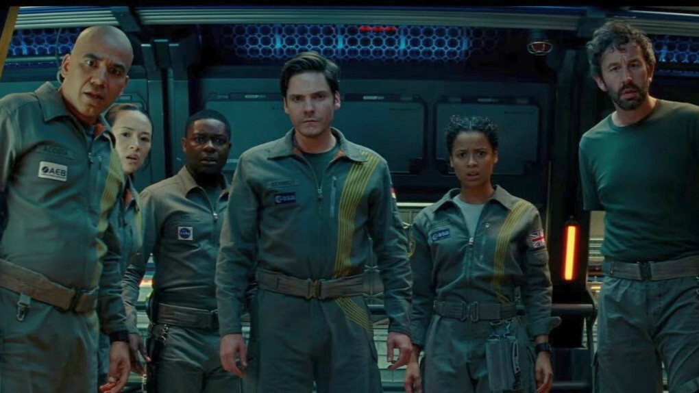 I díky téhle zákulisní transakci se třetí Cloverfield objevuje tak náhle, skoro jako by na nic netušící diváky vyskočil z dortu. Snaží se tvářit trochu jako Sunshine, nízkorozpočtový thriller o pestré směsici vědců, jež má zachránit chřadnoucí planetu. Té se nedostává energie a výpadky elektřiny jsou tak velké, že dostávají na lopatky celé státy. Vědci už se ve vesmíru dva roky snaží nakopnout urychlovač částic, aby uvedli do chodu perpetuum mobile - reakci, která bude dávat triliony voltů za sekundu a nakrmí tak spotřebiče celé planety. Máme tu okatou Gugu Mbatha-Raw, od které je opravdu těžké odtrhnout oči, Daniela Brühla, Chrise O’Dowda, Zhang Ziyi, Elizabeth Debicki nebo Davida Oyelowo - jinými slovy přehlídku povědomých, laciných, ale velmi dobrých herců. I proto Cloverfield Paradox dobře funguje ve první polovině, kdy se “něco” stane a herci mají za úkol několikrát překvapeně zírat směrem do kamery a připravovat diváka na velká odhalení. Ano, je tu pár okamžiků, jež provětrají husinu, ale snímek se velmi rychle zvrtne do klasického vesmírného survivalu, v němž postavy na vesmírné stanici vždy běhají po schodech nahoru k uzamčeným přetlakovým dveřím.