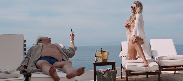 No a pak tu máme za druhé, což bylo něco, co jsem u Trojúhelníku smutku ani v nejmenším nečekal. Ten film dovede být v některých momentech třeskutě vtipný. Takovým způsobem, jak to umí snad jen Monty Pythoni nebo v devadesátých letech bratří Farrellyové. Nechci tu být konkrétní, protože bych vám vykecal dost možná nejlepší filmovou scénu roku. Ovšem to, co se začne dít na lodi v okamžiku, kdy se hrdinové pokoušejí udržet status quo a neopustit svou miliardářskou ulitu navzdory tomu, co se děje, je naprosto za hranou čehokoliv, co by člověk v intelektuální satiře očekával. Několika minutový nekompromisní příval brutálního a neskrývaně fyzického humoru je s každým záběrem absurdnější, šílenější a směšnější. Östlund tu doslova drtí pozlátko luxusu, snobismus a povrchnosti tím, že svoje hrdiny naprosto nekompromisním způsobem poníží tak, že mít vůči nim jakýkoliv respekt jednoduše není možné.