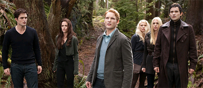 Bella a Edward v „epickém“ zakončení. Ve skutečnosti však v kýčovitém a patetickém filmu, v němž se za dvě hodiny nestane prakticky nic, a který se celý odehrává v jednom lese. Ale mohlo to být ještě horší, pokud si vzpomeneme na předchozí díly.