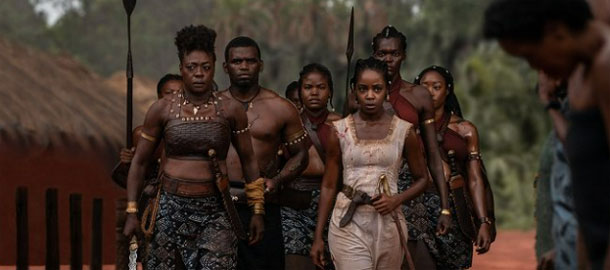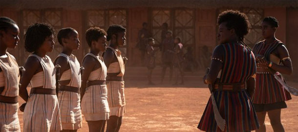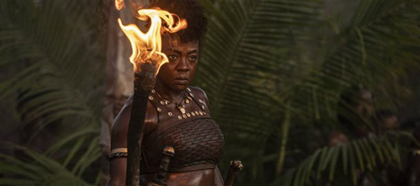 ) střetu hodných černých domorodců se zlými bílými kolonizátory. Ti se sice ve filmu vyskytují rovněž, ale mají v ději jen podružnou roli. Přičemž se snímek nikterak nevyhýbá ani historickému faktu, že prodej zajatých nepřátel do otroctví byl výnosným obchodem a zdrojem moci pro úplně všechny přítomné, včetně království Dahomey . Čtvrté překvapení pro mě představovalo zjištění, že Davis a Lynch zvládají jak dramatickou část role, tak i tu fyzickou v akčních scénách (Lynch si sice vysloužila akční ostruhy loni v Bondovi, ale tady zajde mnohem dál), kterých sice není nijak přehnaně moc (což je vzhledem k neobvyklému prostředí škoda), ale předvedená akce je natočena hodně obstojně a má zajímavou (velice pravděpodobně úplně nerealistickou