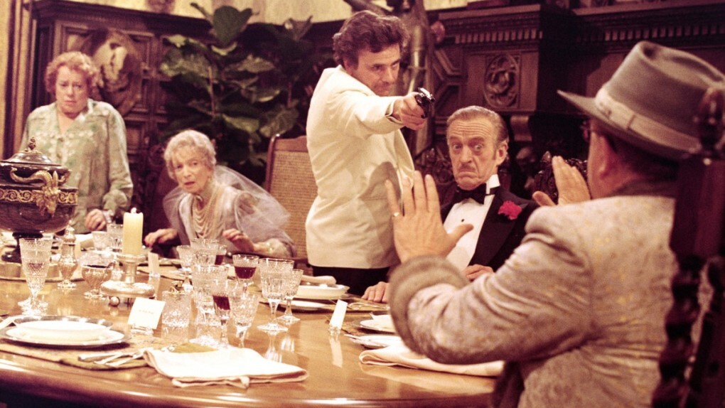 Tvůrci si zkrátka půjčili pět klasických detektivních škatulek, změnili jim vizáž a částečně jména, ale nechali je mluvit a uvažovat víceméně stejným stylem. Sam Diamond (ve výtečném podání Petera Falka) tak kupříkladu rád potahuje z cigarety, klopí do sebe panáky a trousí vzpomínky na ženy, které mu skončily v náručí. A prokládá to cynickými hláškami, tak aby vymodeloval prototyp drsňáckého soukromého očka, jak z amerického žurnálu. Slečna Marplová spořádaně sedí, pije kávu a do toho pečuje o svoji chůvu, a Sidney Wang… ten zas mluví japonsky. Proč se sešli na jednom místě, to byste si jistě dokázali domyslet, nicméně řeknu to: Dojde k vraždě, což odstartuje velmi absurdní experiment na téma „kdo je vlastně tím nejchytřejším detektivem na světě“.